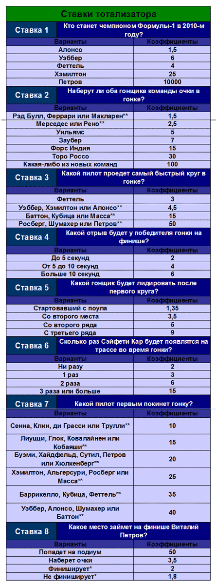 Бонус №1 "Ставка №1. Кто станет чемпионом Формулы-1 в 2010-м году?" для всех